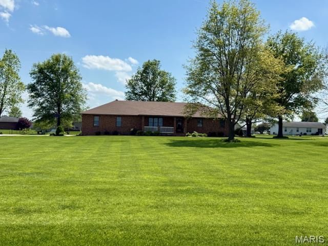 Welcome to this beautifully maintained full-brick ranch nestled on a peaceful 2.43-acre country setting just outside Breese. Offering 3 bedrooms and 2-1/2 bathrooms, this home combines quality construction and functional design. The spacious kitchen has an abundance of cabinetry, a breakfast bar, pantry, SS appliances, and stunning granite countertops. The 3 bedrooms are spacious, and all are located on the main level, with the primary bedroom offering a private bathroom. A standout feature is the enclosed sunroom with a gas fireplace which offers a peaceful space for year-round enjoyment. The main-floor laundry with a convenient 1/2 bath adds everyday practicality. There is also an attic fan and a central vacuum system. If you need room to expand, the full, unfinished basement is waiting for your personal touches! Step outside and enjoy the large patio, beautiful landscaping, and expansive yard offering endless opportunities...whether it's gardening, outdoor entertaining, or simply enjoying the privacy and space that's hard to find in Clinton County. Don't miss out on this gem!
